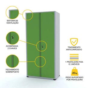 3- Como é a abertura das portas? As portas são inteiriças, de aço. São portas de abrir com fechamento sobreposto, podendo ser trancadas com chave. Para armários com portas de correr, consulte as outras opções do nosso catálogo de produtos.