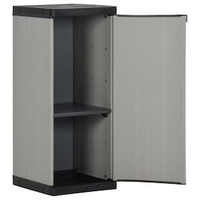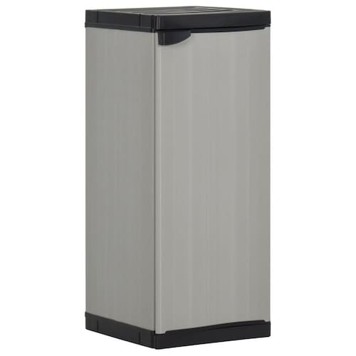Este armário de armazenamento de jardim é essencial para manter sua área externa arrumada. Com um design moderno que se encaixa diretamente em qualquer garagem, pátio ou despensa, ele tem 33,5 polegadas de altura, oferecendo muito espaço sem ocupar muito espaço. O visual cinza e preto aumenta sua atmosfera elegante, tornando-o não apenas útil, mas também bonito de se ver