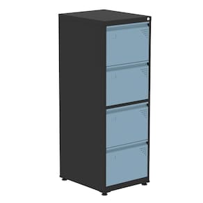 Armário de Arquivo Oficio 4 Gavetas Pandin 47cm (Larg) Aço Preto c/ Frente Gaveta Azul Dali c/ Chave