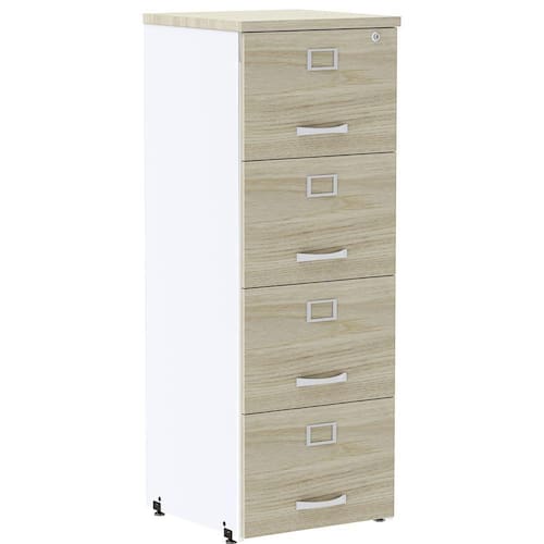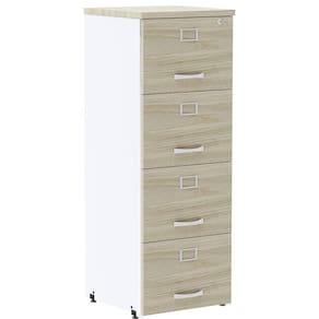 Armário de Arquivo Oficio PE25 Pandin 45,70 cm (largura) em MDP Cor Nogueira CasaBlanca e Branco 4 Gavetas - Bege