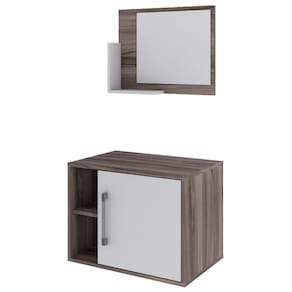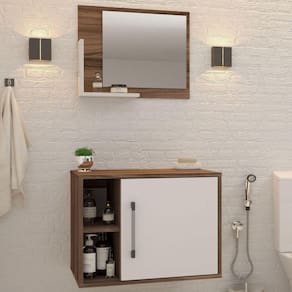O(a) Armário de Banheiro 1 Porta 2 Prateleiras com Espelho Nogal/Branco Chess 14700 - Compace é produzido em MDP na escala de brilho Fosco, e possui um grau de dificuldade de montagem: Médio.