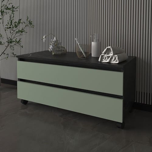 O(a) Armário de Banheiro 2 Gavetas Mármore Mármore Lunar/Verde Mar Bn3603 - Tecno Mobili é produzido em MDP na escala de brilho Semi-Brilho, e possui um grau de dificuldade de montagem: Médio.
