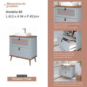 FICHA TÉCNICA ARMÁRIO: - Acabamento: BP - Acabamento da Porta: BP - Acabamento da Prateleira: BP - Cor: Pistache (verde) - Cor Interna: Pistache (Verde) - Escala de Brilho: Fosco - Material da Porta: MDF revestido com tela sintética antimofo - Material da Prateleira: MDF - Material do Puxador da Porta: Couro sintético. - Material Principal: MDF - Necessita Montagem: Sim - Origem do Produto: Nacional - Peso Máximo por Prateleira: 5 - Possui Espelho: Não - Possui Gavetas: Sim - Possui Pés: Sim - Possui Portas: 01 - Possui Prateleiras: Sim - Sistema de Montagem: Parafusos e Cavilhas - Suporta Até (kg): 14 - Tipo de Dobradiça/Corrediça da Porta: Metálica - Tipo de Porta: Basculante - Tipo de Puxador da Porta: Externo