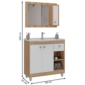 O(a) Armário de Banheiro 3 Portas 1 Gaveta com Cuba Castanho/Branco 000118 - Ozini Móveis é produzido em MDP na escala de brilho Semi-Brilho, e possui um grau de dificuldade de montagem: Fácil.
