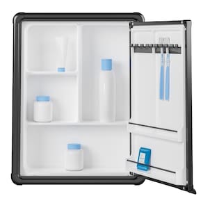 Características: Espelho em toda a superfície do armário Divisão interna com porta-escovas e prateleiras embutidas para armazenar os objetos do dia a dia Leve, resistente e de fácil limpeza. Pode ser instalado sobreposto à parede Possui cantoneiras arredondadas na porta e na lateral do armário, para um melhor acabamento, evitando os cantos vivos.