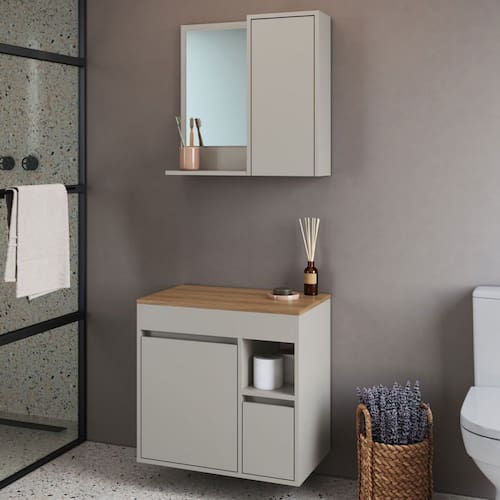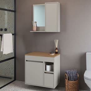- Acompanha: Armário de Banheiro + Kit ferragens + Manual de Montagem