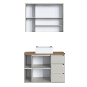 O(a) Armário de Banheiro Belagavi 3 Portas 3 Gavetas com Cuba e Espelho Arenas - Art In Móveis é produzido em MDP na escala de brilho Fosco, e possui um grau de dificuldade de montagem: Médio.