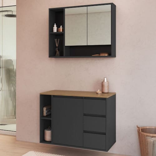 O(a) Armário de Banheiro Belagavi 3 Portas 3 Gavetas com Espelho Grafite - Art In Móveis é produzido em MDP na escala de brilho Fosco, e possui um grau de dificuldade de montagem: Médio.
