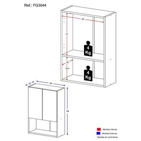 Dimensões do produto montado: Altura: 68cm | Largura: 48cm | Profundidade: 22cm *Você pode consultar as medidas internas na imagem técnica do produto.