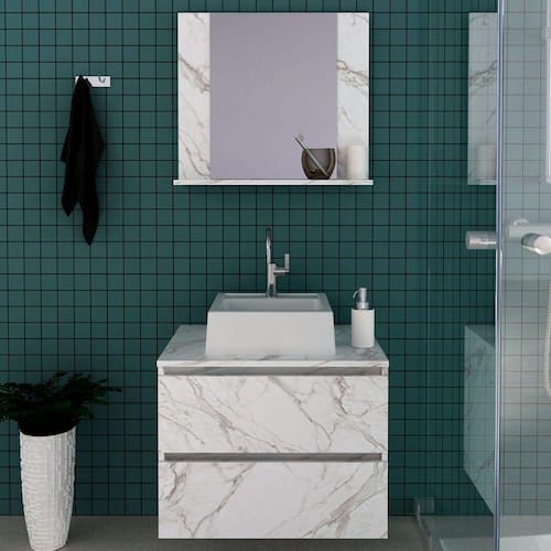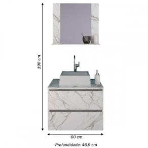O(a) Armário de Banheiro com Cuba 2 Gavetas Mármore Branco Bn3627 - Tecno Mobili é produzido em MDP na escala de brilho Semi-Brilho, e possui um grau de dificuldade de montagem: Médio.