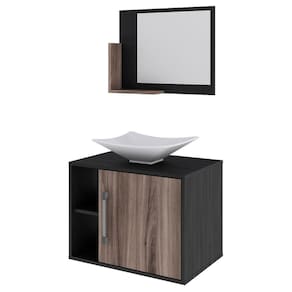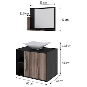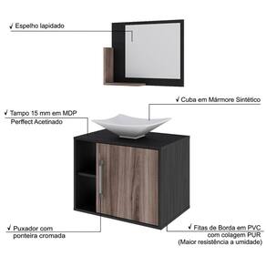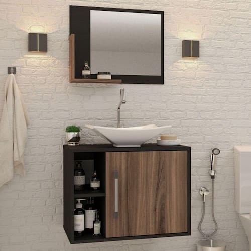 O(a) Armário de Banheiro com Cuba e Espelho 1 Porta 2 Prateleiras Preto ônix/Nogal 13689 - Compace é produzido em MDP na escala de brilho Fosco, e possui um grau de dificuldade de montagem: Médio.