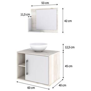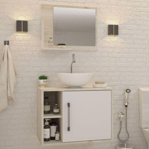 O(a) Armário de Banheiro com Cuba e Espelho 1 Porta 2 Prateleiras Snow/Branco Chess 13688 - Compace é produzido em MDP na escala de brilho Fosco, e possui um grau de dificuldade de montagem: Médio.