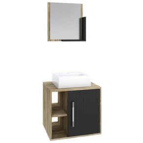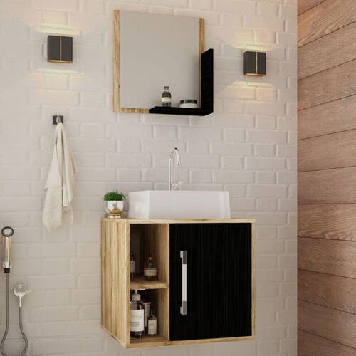 O(a) Armário de Banheiro com Cuba e Espelho Soft 1 Porta 2 Prateleiras Carvalho/Preto ônix 13685 - Compace é produzido em MDP na escala de brilho Fosco, e possui um grau de dificuldade de montagem: Médio.