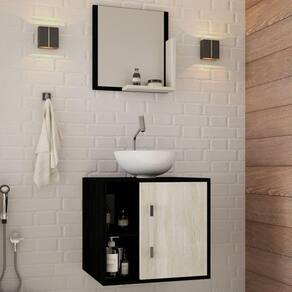 O(a) Armário de Banheiro com Cuba e Espelho Soft 1 Porta 2 Prateleiras Preto Onix/Snow 13686 - Compace é produzido em MDP na escala de brilho Fosco, e possui um grau de dificuldade de montagem: Médio.
