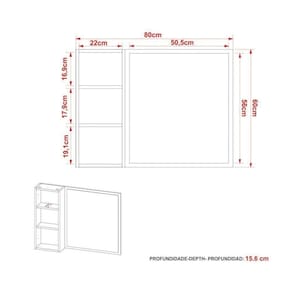 Dimensões(Cm): Comnto(Profundidade): 15,6cm x Largura: 80cm x Altura: 60cm