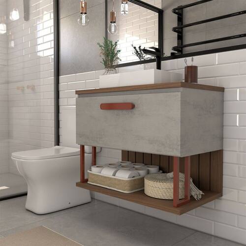 O(a) Armário de Banheiro Grandeza 80 Cm 1 Porta 100% Mdf Cimento/Freijó - Loja é produzido em 100% MDF na escala de brilho Semi-Brilho, e possui um grau de dificuldade de montagem: Médio.