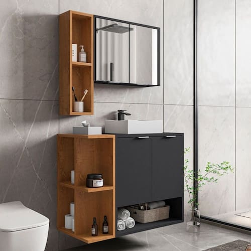 - Acompanha: Armário de Banheiro + Cuba + Kit Ferragem + Manual de Montagem
