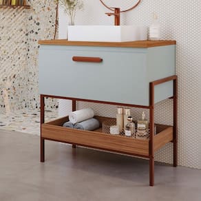 O(a) Armário de Banheiro Portinari 80cm 1 Porta 100% Mdf Pistache/Freijó - Mgm Móveis  é produzido em 100% MDF na escala de brilho Semi-Brilho, e possui um grau de dificuldade de montagem: Médio.