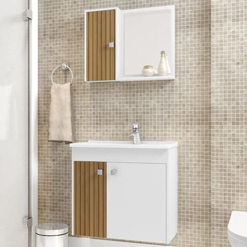 - Acompanha: Armário para Banheiro + Cuba + Kit Ferragens + Manual de Montagem