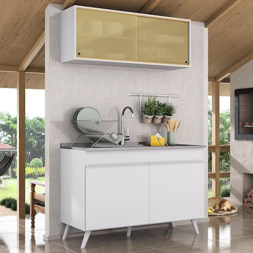 A Cozinha Compacta 2 peças com Armário e Balcão MP2140 Multimóveis tem um excelente custo benefício e um amplo espaço interno. Produzida em MDP com acabamento acetinado (cerca de 20% de brilho), que garante maior durabilidade e resistência, possui amplo espaço interno, pés retrô em polipropileno, que deixam o ambiente mais estiloso, puxadores em ABS e tampo em MDP 15mm com pintura de alta resistência. Os módulos são individuais e você pode montar da maneira que se adaptar melhor ao seu ambiente. O balcão possui tampo removível (compatível com pia de 120 cm). Para deixar sua cozinha mais bonita e organizada, possui compartimento especial para utensílios mais altos. *Não acompanha pia de inox.