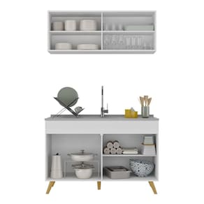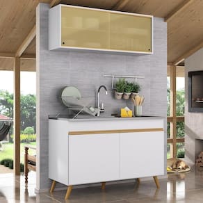 A Cozinha Compacta 2 peças com Armário e Balcão MP2140 Multimóveis tem um excelente custo benefício e um amplo espaço interno. Produzida em MDP com acabamento acetinado (cerca de 20% de brilho), que garante maior durabilidade e resistência, possui amplo espaço interno, pés retrô em polipropileno, que deixam o ambiente mais estiloso, puxadores em ABS e tampo em MDP 15mm com pintura de alta resistência. Os módulos são individuais e você pode montar da maneira que se adaptar melhor ao seu ambiente. O balcão possui tampo removível (compatível com pia de 120 cm). Para deixar sua cozinha mais bonita e organizada, possui compartimento especial para utensílios mais altos. *Não acompanha pia de inox.