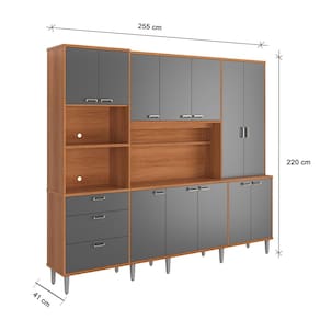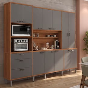 Armário de Cozinha Pulse 12 Portas 3 Gavetas Jequitibá/Grafite - Lukaliam