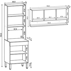 Conteúdo da Embalagem: 1 Armário Aéreo 150cm, 1 Paneleiro.