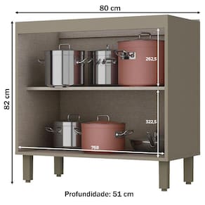 - Indicação de Uso: Cozinha - Material da Estrutura: MDF - Como os Móveis Chegarão na Minha Casa: Desmontados, em caixas, acompanhados de todas as peças, ferragens e manuais para montagem. - Material das Dobradiças: Metálica - Material do Puxador: Alumínio - Observação: Objetos decorativos que aparecem nas imagens, não acompanham o produto. - Necessita de Montagem: Sim - Recomendação de Manutenção: Limpeza com pano seco, limpo, macio e isento de impurezas. - Garantia (dias): 90 - Grau de Dificuldade da Montagem: Médio - Sistema de Montagem: Parafusos, cavilhas e minifix. - Material das Corrediças: Não possui - Pés com regulagem de altura?: Sim - Possui Sapatas?: Sim - Peso Suportado nas Prateleiras (kg): 5 - Quantidade de Puxadores: 2 - Escala de Brilho: Fosco - Quantidade de Pés/Sapatas: 4 - Quantidade de Prateleiras: 1 - Revestimento /Acabamento: Pintura UV - Quantidade de Prateleiras: 1 - Possui Espelho?: Não - Material das Dobradiças: Metálica - Material do Puxador: Alumínio - Peso Suportado nas Prateleiras:: 5 Kg - Possui Gavetas?: Não - Possui Portas?: Não - Possui Prateleiras?: Não - Possui Puxadores?: Não - Quantidade de Portas: 2