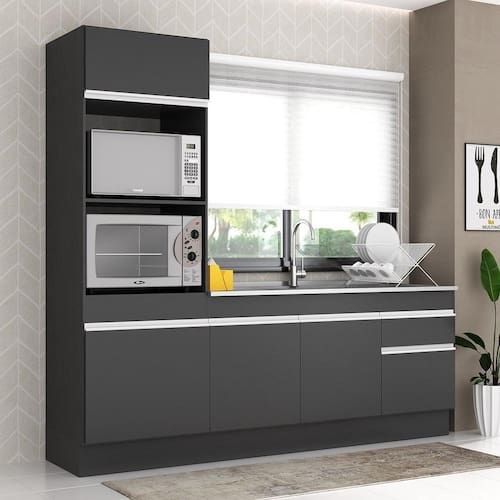 O Armário de Cozinha Compacta 212cm com Rodapé Veneza Multimóveis V2113 tem um excelente custo benefício e um amplo espaço interno. Produzido em MDP com acabamento acetinado (cerca de 20% de brilho), que garante maior durabilidade e resistência, possui corrediças metálicas (mais leveza no manuseio), rodapés, que deixam o ambiente mais estiloso, puxadores em ABS e tampo em MDP 15mm com pintura de alta resistência. Esta cozinha conta com balcão com tampo removível (compatível com pia de 150 cm) com 1 gaveta e 3 portas, além de espaço para forno e microondas. Os módulos são individuais e você pode montar da maneira que se adaptar melhor ao seu ambiente. *Não acompanha pia de inox.Conteúdo da Embalagem:1 (um) armário para forno e microondas 62cm1 (um) balcão com tampo 150cm1 (um) kit com rodapésDimensões do produto montado:Altura: 203cm | Largura: 212cm | Profundidade: 53cm (balcão com tampo e paneleiro)*Você pode consultar as medidas internas na imagem técnica do produto.*As cores do produto podem sofrer variações de tonalidade de acordo com as configurações do seu dispositivo.Imagem meramente ilustrativa. Decoração e eletros não acompanham o produto.O produto será entregue desmontado e não disponibilizamos o serviço de montagem. Acabamento: Pintura Acetinada Texturizada | Cor: Preto/Dourado | Tonalidade: Preto | Material: MDP | Referência do Modelo: V2113 | Coleção: Veneza | Instruções de Cuidado: Limpar com pano seco para retirar o pó. Não utilizar lustra móveis e produtos químicos ou abrasivos à limpeza. | Sistema de Montagem: O produto acompanha manual de montagem e kit ferragem. O produto será entregue desmontado e não disponibilizamos o serviço de montagem. | Produto Composto por: 1 armário para forno e microondas 62cm, 1 balcão com tampo 150cm, 1 kit com rodapés, manual de montagem e kit ferragem. | Altura Montado: 203 | Largura Montado: 212 | Profundidade Montado: 53 | Tamanho (L x A x P): 212 x 203 x 53 | Peso do Produto: 82 | Garantia do Fabricante: 3 | Fabricante: Multimóveis | Requer Montagem: Sim | Quantidade de Portas: 5 | Quantidade de Gavetas: 1 | Quantidade de Prateleiras: 4 | Quantidade de Puxadores: 5 | Quantidade de Pés: 10 | Porta com Vidro: Não | Corrediça: Metálica | Material do Puxador: ABS | Material dos Pés: Polipropileno | Acompanha Pia Inox: Não | Balcão 120 cm compatível para uso de pia: Não | Tampo Incluso: Sim | Quantidade de Tampos: 1 | Material do Tampo: MDP | Espessura do Tampo: 1.5 | Com Prateleiras: Sim | Produto: Cozinha Compacta | Tipo: Modular | Altura (cm): 203 cm | Largura (cm): 212 cm | Profundidade (cm): 53 cm | Estado de Origem: RS | Produto precisa de Montagem?: Sim, sugerimos a contratação do nosso serviço de montagem (para os CEPs em que o serviço está disponível) ou de algum profissional experiente de sua preferência | Ubicação do móvel: Não aplica | Altura do Produto com Embalagem: 47 | Largura do Produto com Embalagem: 57 | Comprimento do Produto com Embalagem: 188 | Peso do Produto com Embalagem: 82 | Nome do Produto no Fornecedor: Armário de Cozinha Compacta 212cm com Rodapé Veneza Multimóveis V2113 Preto/Dourado | Descrição do Tamanho: (L x A x P): 212 x 203 x 53 cm | Tempo de Garantia: 3 meses | Destaque 1: MDP com acabamento acetinado: maior durabilidade e resistência. | Destaque 2: Balcão com tampo removível: pode ser utilizado com pia. | Destaque 3: Corrediças metálicas (mais leveza no manuseio) e pés retrô em polipropileno: ambiente mais estiloso. | Destaque 4: Tamanho do Produto Montado (L x A x P): 212 x 203 x 53 cm | Destaque 5: Os módulos são individuais e você pode montar da maneira que se adaptar melhor ao seu ambiente. Garantia de 90 dias contra defeitos de fabricação. | Marca: Multimóveis | Acessórios incluídos: N/A Cor: Preto/Branco
