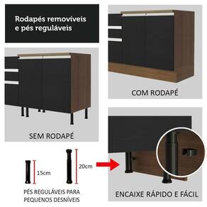 Uma excelente escolha para transformar sua cozinha em um ambiente mais acolhedor e prático é o Armário de Cozinha Completa da linha Glamy da Madesa.Fabricado com foco na durabilidade e na qualidade, esse móvel apresenta puxadores em alumínio, portas com fechamento suave, pés ajustáveis em PVC e rodapé em MDP, que pode ser removido sem dificuldade.A cozinha conta com módulos distribuídos de forma inteligente, gerando amplo espaço para guardar alimentos e utensílios, se tornando praticamente uma cozinha planejada para sua casa.Outra vantagem deste móvel é que ele permite a instalação de uma pia de pedra ou inox no balcão, com medidas de 120 x 52 cm.Para completar, o acabamento da estrutura é no padrão amadeirado Rustic e o das portas e frentes é preto. Feito em Pintura Poliéster ecológica, que consiste na aplicação de 7 camadas de proteção resistentes a álcool, água e calor.Medidas totais:- 225 cm de altura- 260 cm de largura- 52 cm nos balcões e 31 cm nos aéreosItens inclusos:- Um (1) Aéreo de 60 cm com uma (1) porta- Um (1) Balcão de 60 cm com uma (1) porta e tampo- Um (1) Aéreo de 80 cm com uma (1) porta basculante- Um (1) Aéreo de 120 cm com duas (2) portas- Um (1) Balcão de 120 cm com duas (2) portas e três (3) gavetas (Não acompanha tampo.)Código do produto: GRGL2600047KObs.:- Imagens meramente ilustrativas- A Madesa não disponibiliza serviço de montagem, o produto segue com manual e todas as ferragens necessárias para a instalação COR: Preto | Garantia: 3 meses contra defeitos de fabricação | Dimensões - Altura: 225 cm | Dimensões - Largura: 260 cm | Dimensões - Profundidade: 52 cm | Produto: Cozinha | Marca: Madesa | Peso aproximado: 118 kg | Material: MDP | RBN: Casa/Móveis/Móveis de Cozinha | Estado de Origem: RS | Material para Filtro: MDP | Conteúdo da embalagem: 1 Cozinha Completa | Instruções/Cuidados: Utilize um pano limpo, levemente umedecido e seque em seguida a superfície. Não usar produtos químicos ou abrasivos para a limpeza. Recomendamos polir seu móvel com lustra-móveis duas a três vezes por ano. | Quantidade de gavetas: 2 | Quantidade de portas: 6 | Produto precisa de Montagem?: Sim | Inclui tampo: Não | Altura do Produto com Embalagem (cm): 72.5 | Largura Produto Com Embalagem (cm): 62 | Comprimento Produto Com Embalagem (cm): 136 | Peso Produto Com Embalagem (Kg): 118 | Descrição do Tamanho: 225 cm x 260 cm x 52 cm | Nome do Simples no Fornecedor: Armário de Cozinha Completa 260cm Rustic/Preto Glamy Madesa 04 | Contato do Fabricante: contato@madesa.com | Fabricante: Madesa Cor: Rustic/Preto