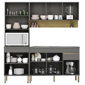 Conteúdo da Embalagem: 1 Balcão 120cm, 1 Armário Aéreo 120cm, 1 Paneleiro, 1 Pia Inox.