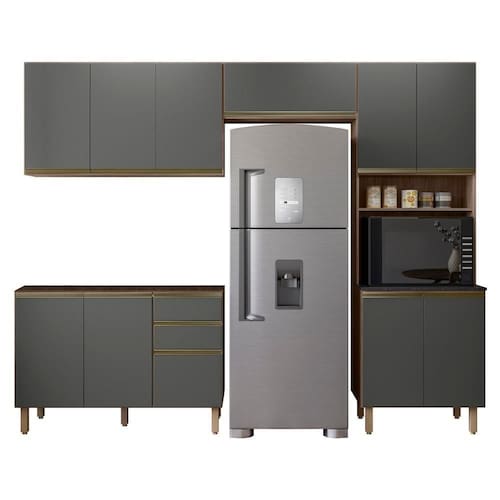 Conheça o Armário de Cozinha 4 Peças Sem Tampo Lita N03 Carvalho/Grafite, da Mpozenato a combinação perfeita de funcionalidade e estilo.