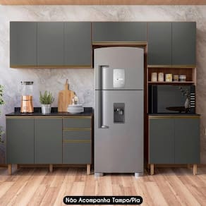 Conteúdo da Embalagem: 1 Balcão 120cm, 1 Armário Aéreo 120cm, 1 Armário Basculante, 1 Paneleiro.