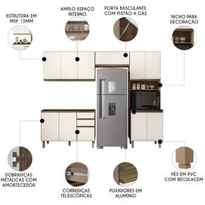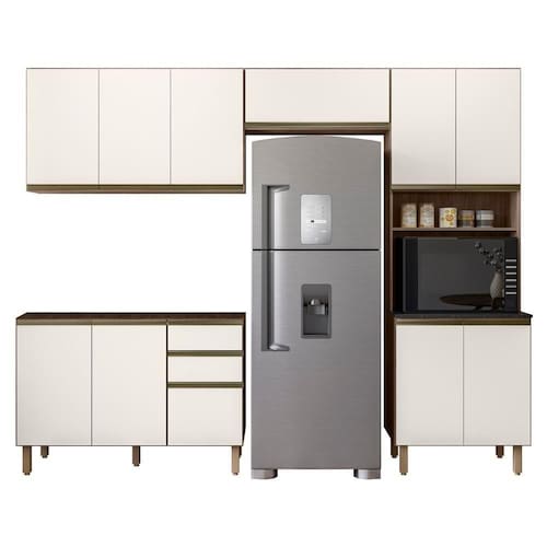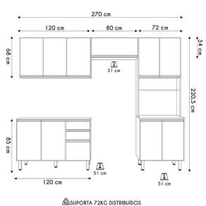 Conteúdo da Embalagem: 1 Balcão 120cm, 1 Armário Aéreo 120cm, 1 Armário Basculante, 1 Paneleiro.
