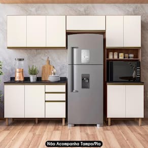 Com estrutura robusta em MDF de 15mm, garante durabilidade e resistência, enquanto o acabamento em pintura UV confere um visual moderno e fácil de limpar. As dobradiças metálicas com amortecedores e puxadores de alumínio proporcionam um fechamento suave e silencioso das portas. O Paneleiro Para Micro-Ondas, com quatro portas, oferece amplo espaço de armazenamento, além de nichos estrategicamente posicionados para eletrodomésticos e condimentos. O Armário Aéreo de 120cm, com três portas e uma prateleira interna, otimiza o espaço vertical, permitindo a organização eficiente da Cozinha. O Balcão Para Pia de 120cm, sem tampo, inclui duas portas e três gavetas com corrediças telescópicas, garantindo acesso fácil e organização dos utensílios. Os pés em PVC são ajustáveis, assegurando estabilidade em qualquer superfície. Por fim, o Armário Basculante aéreo de 80cm, com pistão a gás, reflete o cuidado na fabricação, promovendo um uso confortável e prolongando a vida útil do móvel.