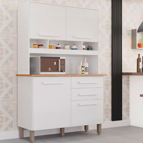 Armário De Cozinha 4 Portas 2 Gavetas Sofia Plus Imop Móveis Branco Neve Armario para Cozinha 4 Portas 2 Gavetas Sofia Plus IMOP Moveis O Armario de Cozinha Sofia Plus IMOP agrega charme e sofisticacao ao seu ambiente. Ele possui amplo espaco e gavetas para acomodar os seus utensilios e proporcionar a melhor organizacao do espaco com tudo que precisa. Caracteristicas: Material Principal Moveis; MDP Material Da Porta; MDP Acabamento da Gaveta; Pintura Texturizada UV Escala da Brilho; Semi-fosco Escala de Brilho da Gaveta; Semi-fosco Material dos Pes; Polipropileno Acabamento da Porta; Pintura Texturizada UV Material da Gaveta; MDP Tipo de Corredica da Gaveta; Metalica Telescopica Acabamento dos Pes; Pintura Escala de Brilho da Porta; Semi-fosco Tipo de Dobradica/Corredica da Porta; Aluminio Acabamento da Prateleira; Pintura Escala de Brilho da Prateleira; Semi-fosco Material da Prateleira; MDP Necessita Montagem; Sim Complexidade da Montagem; Alta: deve ser montado por um montador especializado Sistema de Montagem; Parafusos, dobradicas e Cavilhas. Recomendacoes de Uso, Manutencao e Limpeza; Limpeza com pano macio e levemente umedecido. Nao utilizar solventes a base e de inflamaveis. Nao utilizar produtos abrasivos. Possui Prateleiras; 02 Tipo de Porta; Bater Possui Portas; 04 Possui Espelho na porta: nao Tipo de Gaveta; Externa Marca; IMOP Moveis Possui Portas; Sim Possui Pes; 04 Possui Iluminacao; Nao Peso Maximo por Prateleira; 5 kg Gaveta com Chave; Nao Estilo; Moderno Possui Organizador de Gaveta; Nao Sapatas Niveladoras; Nao Pes regulaveis: Sim Cor do Produto; Cinamomo/Off White Peso Maximo por Gaveta; 5 kg Tipo de Puxador da Gaveta; Externo Tipo de Puxador da Porta; Externo Balcao suporta pia: Nao Recorte para Cooktop: Nao Origem do Produto; Nacional Ambiente Principal; Cozinha