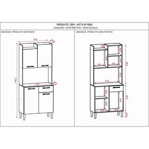 O Kits é produzido em MDP com portas e gavetas, matéria prima que respeita o meio ambiente. São quatro portas, sendo duas portas superiores com espaço para guardar todos os seus utensílios. Nas portas e gavetas são utilizadas corrediças e dobradiças 100% metálicas para garantir a suavidade e no abrir e fechar. Possui excelente aproveitamento no espaço interno, contando com prateleiras. Pés em plástico resistente (polipropileno) . Puxadores em plástico resistente (poliestireno) acabamento cinza . Padrões de cores modernas que combinam e embelezam sua cozinha.