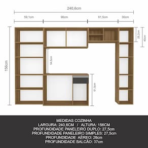 Medidas da Cozinha Montada: A:156cm | L:240,6cm | P:37cm