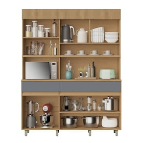 Transforme seu ambiente com nosso armário de cozinha com nicho para micro-ondas, uma peça moderna e funcional que combina acabamento ripado com portas clean para deixar o ambiente mais elegante e organizado. Com nichos e pés reguláveis, ele oferece praticidade no dia a dia e excelente aproveitamento do espaço, sendo ideal para quem busca um armário de cozinha compacto, durável e com visual moderno, digno de uma cozinha planejada. Perfeito para organizar utensílios, expor objetos decorativos e trazer mais charme para sua rotina.