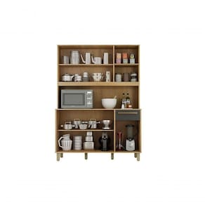 Estrutura em MDP 15mm; Acabamento pintura UV; Pés em PVC com regulagem; 01 prateleira; 03 nichos; 01 gaveta com corrediça telescópica; Puxador em PVC; 05 portas com dobradiças metálicas de pressão; 02 vidros mini boreal nas portas;