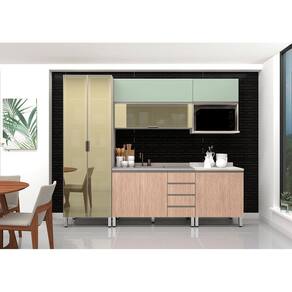 Armário de Cozinha Compacta 6 Peças sem Tampo Legno Crema com Cumaru e Verde Jade Luci Luciane Móveis