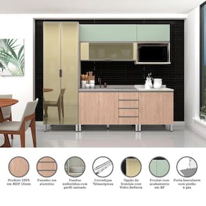 Armário De Cozinha Compacta 6 Peças Sem Tampo Legno Crema Com Cumaru E Verde Luci Luciane Móveis Legno Crema Com Cumaru E Verde Jade