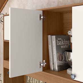 A cozinha é composta por 6 portas e 1 gaveta contento na sua parte interna 2 prateleiras (uma na parte superior e outra na parte inferior). Os puxadores dessa cozinha possui um design moderno para trazer ainda mais sofisticação.