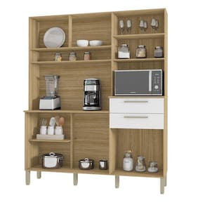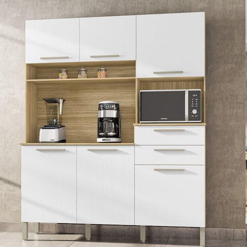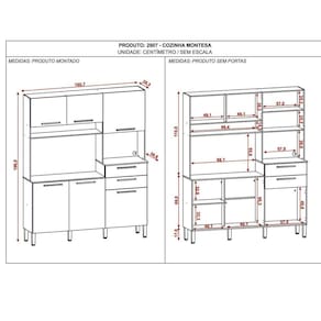 A Cozinha Montesa é produzida com madeira reconstituída - MDP de 12 mm e MDP de 15 mm nos tampos, provindo de reservas florestais para este fim, respeitando o meio ambiente. Possui seis portas, duas amplas gavetas. Nas portas e gavetas são utilizados dobradiças e corrediças 100% metálicas. Os puxadores são em plástico resistente (poliestireno), que proporciona grande durabilidade. Seis pés reguláveis em plástico resistente (polipropileno) garantem a estabilidade do produto, podendo-se fazer pequenos ajustes na montagem, para o produto se adequar mesmo em pisos com pequenas irregularidades. Conta com nicho para pequenos objetos, além disso, tem nicho para micro-ondas e passa-fio no traseiro facilitando o acesso à tomada na parede. O espaço interno é bem dividido. Acabamento da Prateleira: Pintura Texturizada UV Escala de Brilho da Prateleira: Fosco Acabamento da Gaveta: Pintura Texturizada UV Escala de Brilho da Gaveta: Fosco Material do Puxador da Gaveta: Poliestireno Acabamento da Porta: Pintura Texturizada UV Escala de Brilho da Porta: Fosco Material do Puxador da Porta: Poliestireno Acabamento dos Pés: Polipropileno Acompanha Tampo: Sim Altura dos Pés: 17 Ambiente Principal: Cozinha Complexidade da Montagem: Média: pode ser montado por mais de uma pessoa e/ou necessite de maior conhecimento para montagem Cor: Freijó/Supremo Cor do Produto: Freijó/Supremo Cor Interna: Freijó Escala de Brilho: Fosco Gaveta com Chave: Não Informações Complementares: Considerar um peso bem distribuído por todo o produto. Itens Inclusos: 1 Cozinha Compacta, Kit Ferragens e Manual de Montagem Manual de Montagem e Instalação: https://cdn2.madeiramadeira.com.br/atributo/kits-parana/1096356-2907-cozinha-montesa.pdf Material da Dobradiça/Corrediça da Porta: Metálica Material da Gaveta: MDP Material da Porta: MDP Material da Prateleira: MDP Material do Fundo: Madefibra Material do Tampo: MDP Material dos Pés: Polipropileno Necessita Montagem: Sim O Balcão Acompanha Pia: Não Origem do Produto: Nacional Pés Reguláveis: Sim Peso: 60.1 Peso Máximo por Gaveta: 4 Peso Máximo por Prateleira: 5 Possui Pés: 06 Possui Portas: 06 Possui Prateleiras: 05 Possui recorte para Cooktop: Não Possui Rodízio: Não Recomendações de Uso, Manutenção e Limpeza: Limpeza do produto somente com pano seco ou levemente umedecido, não utilizar abrasivos. Respeitar o limite de peso estabelecido no esquema de montagem. Evitar mover o produto com utensílios dentro. Sapatas Niveladoras: Não Sistema de Montagem: Cavilhas, Parafusos e Pregos. Suporta Até (kg): 77 Tipo de Corrediça da Gaveta: Simples Tipo de Dobradiça da Porta: Simples Tipo de Puxador da Gaveta: Externo Tipo de Puxador da Porta: Externo