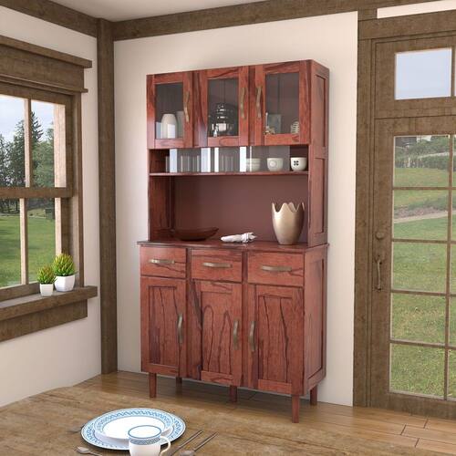 O(a) Armário de Cozinha 6 Portas 3 Gavetas Rústico Madeira Maciça Castanho - Loja é produzido em Madeira Maciça e Pinus na escala de brilho Alto Brilho, e possui um grau de dificuldade de montagem: Médio.