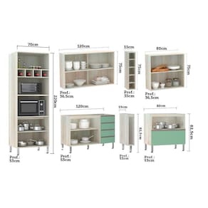 Armário De Cozinha Compacta 7 Peças Com Tampo Legno Crema Com Verde Jade Luci Luciane Móveis Legno Crema Com Verde Jade