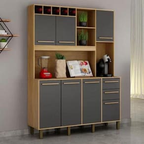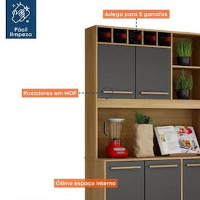 O Armário Granada é super compacto e cabe em qualquer cozinha, composto por 7 portas e 2 gavetas, com puxadores em EPS cromado, pés em EPS reguláveis e corrediças telescópicas.