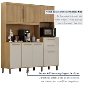 Renove sua cozinha com estilo e funcionalidade com nosso Armário de Cozinha! As portas superiores trazem detalhes frisados e puxadores em MDF que adicionam elegância ao design, enquanto o nicho para micro-ondas otimiza o espaço e facilita o dia a dia. E para completar, as gavetas com corrediças telescópicas garantem um deslizamento suave e sem esforço, oferecendo praticidade na hora de organizar seus utensílios. Combinando elegância e eficiência, esse armário é perfeito para transformar sua cozinha em um ambiente moderno.