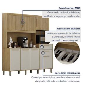 Arm?rio de Cozinha 7 Portas 2 Gavetas Quartzo Renove sua cozinha com estilo e funcionalidade com nosso Arm?rio de Cozinha! As portas superiores trazem detalhes frisados e puxadores em MDF que adicionam eleg?ncia ao design, enquanto o nicho para micro-ondas otimiza o espa?o e facilita o dia a dia. E para completar, as gavetas com corredi?as telesc?picas garantem um deslizamento suave e sem esfor?o, oferecendo praticidade na hora de organizar seus utens?lios. Combinando eleg?ncia e efici?ncia, esse arm?rio ? perfeito para transformar sua cozinha em um ambiente moderno.