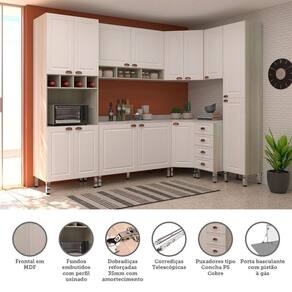 Armário De Cozinha Completa 8 Peças Com Tampo Legno Crema Com Branco Pet Agatha Luciane Móveis Legno Crema Com Branco Pet